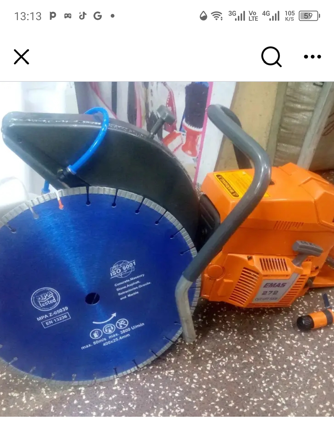 It can cut tiles, stone, marble, granite, and concrete.